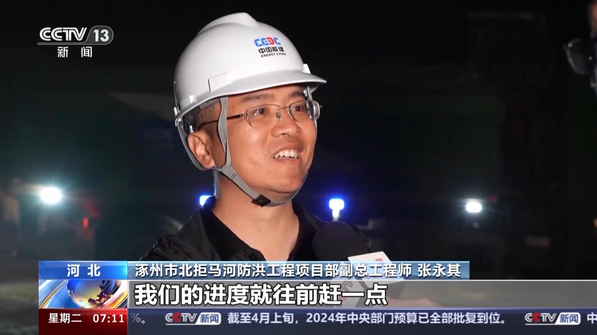 河北涿州市北拒马河防洪工程项目部副总工程师张永其表示,每天多填一点,工程的进度就往前赶一点,就能更早一天完成这个任务,使这个新堤更早地筑建起来,更好地为这个涿州这一块起到一个安全保障。