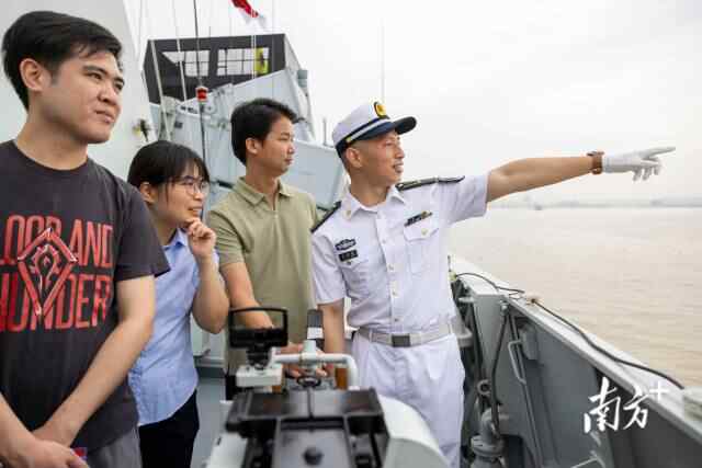 “今天亲眼见到广州舰,比以前在书里看到的更加宏伟,我为人民海军骄傲和自豪。”蒋光鼐纪念小学学生陈骏熙从小是个军迷,第一次登上广州舰让他欣喜不已。
