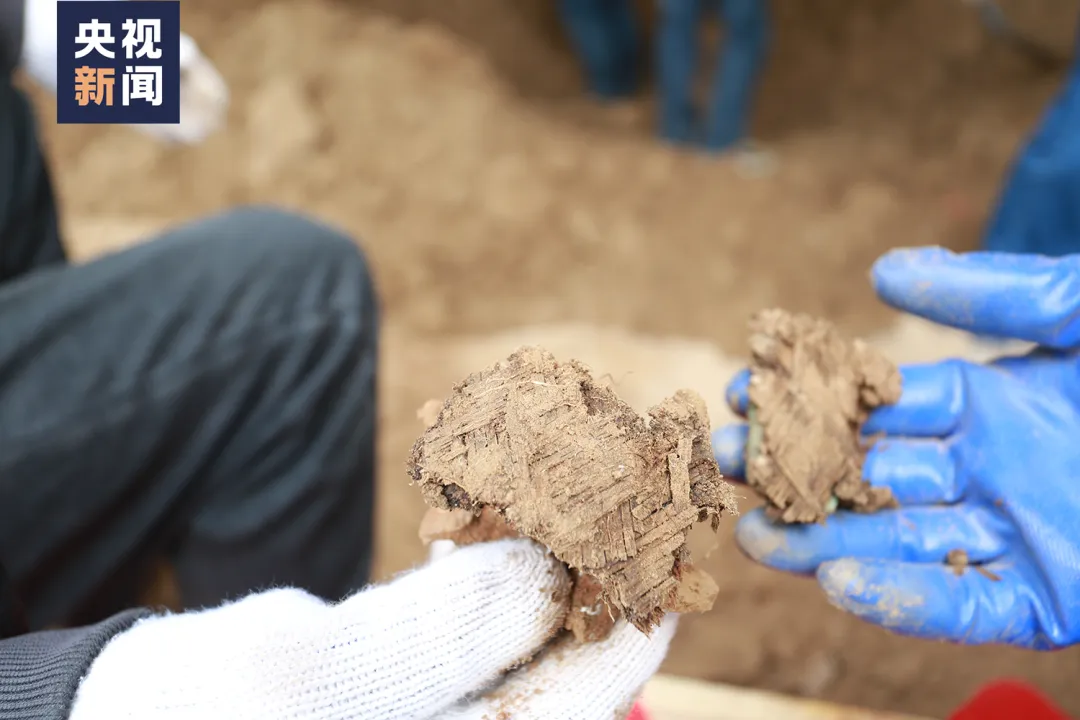 △雪村战斗烈士墓出土的烈士皮带扣,上面是当年群众掩埋烈士的草席。