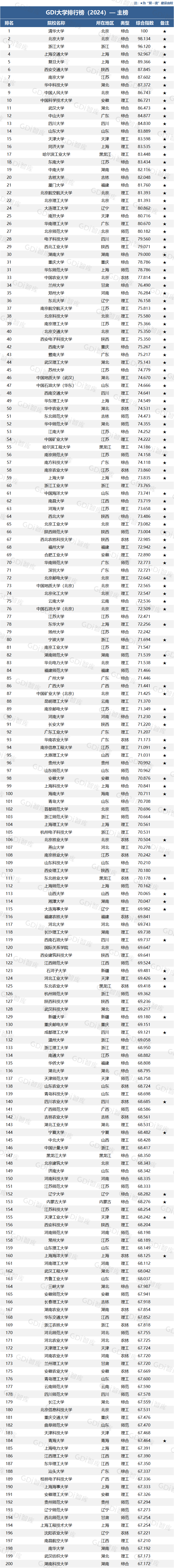 日前,GDI大学排行榜(2024)对外发布。GDI大学排行榜(2024)评估全国1256所本科院校(不含港澳台地区、艺术类和军事类院校,中国科学院大学、中国社会科学院大学未纳入评估),同步推出“GDI大学排行榜(2024)— 主榜”及师范类、医药类、财经类、政法类、语言类、民族类、体育类、对外合作办学类和职业本科类等多个平行榜单。