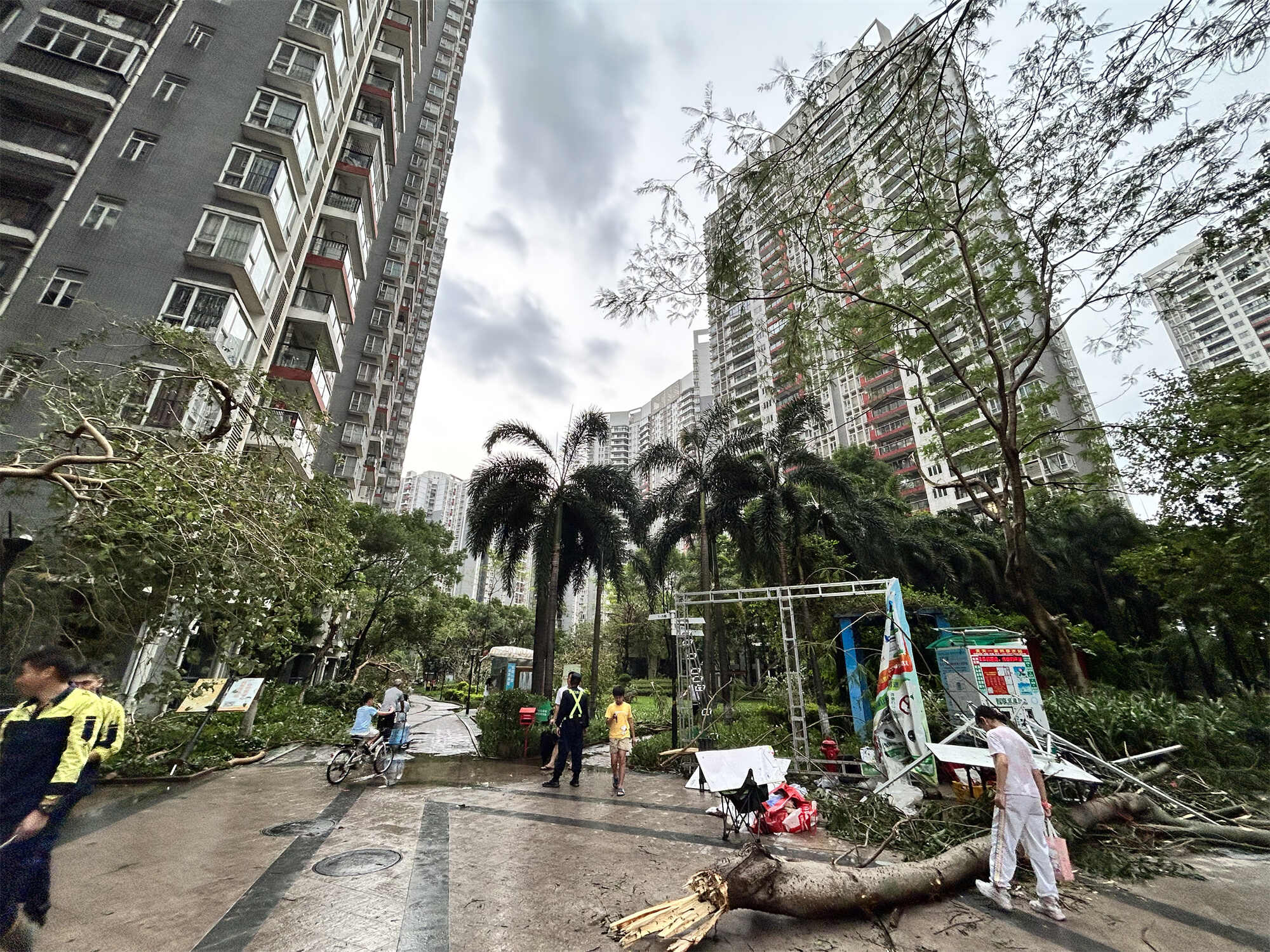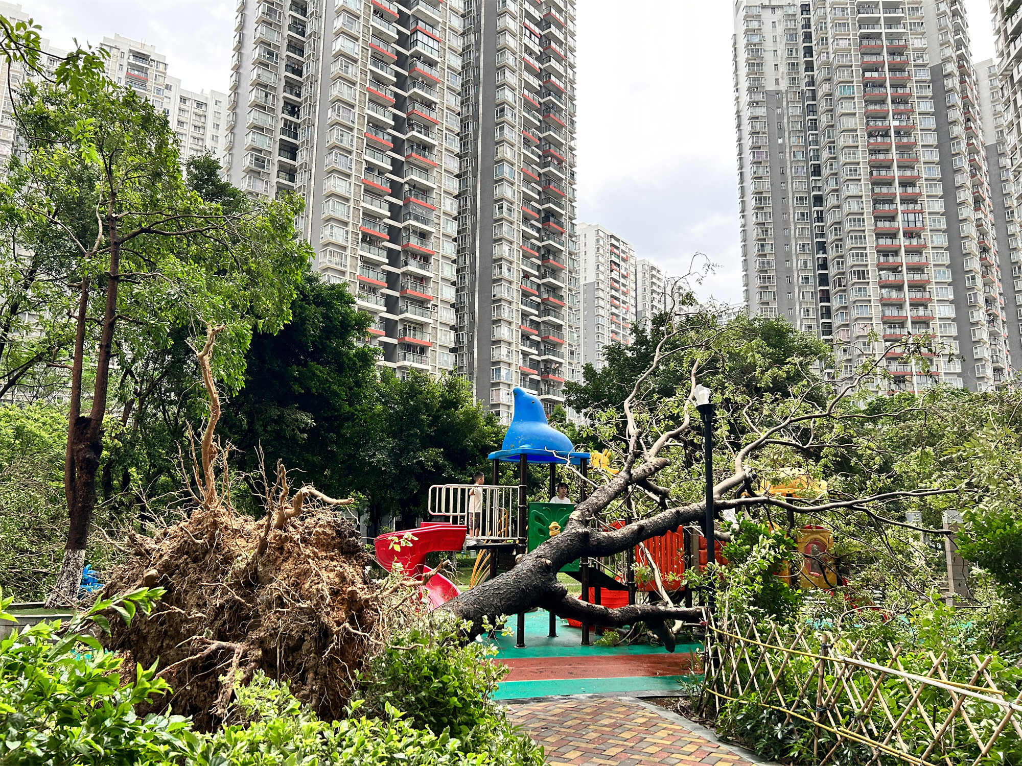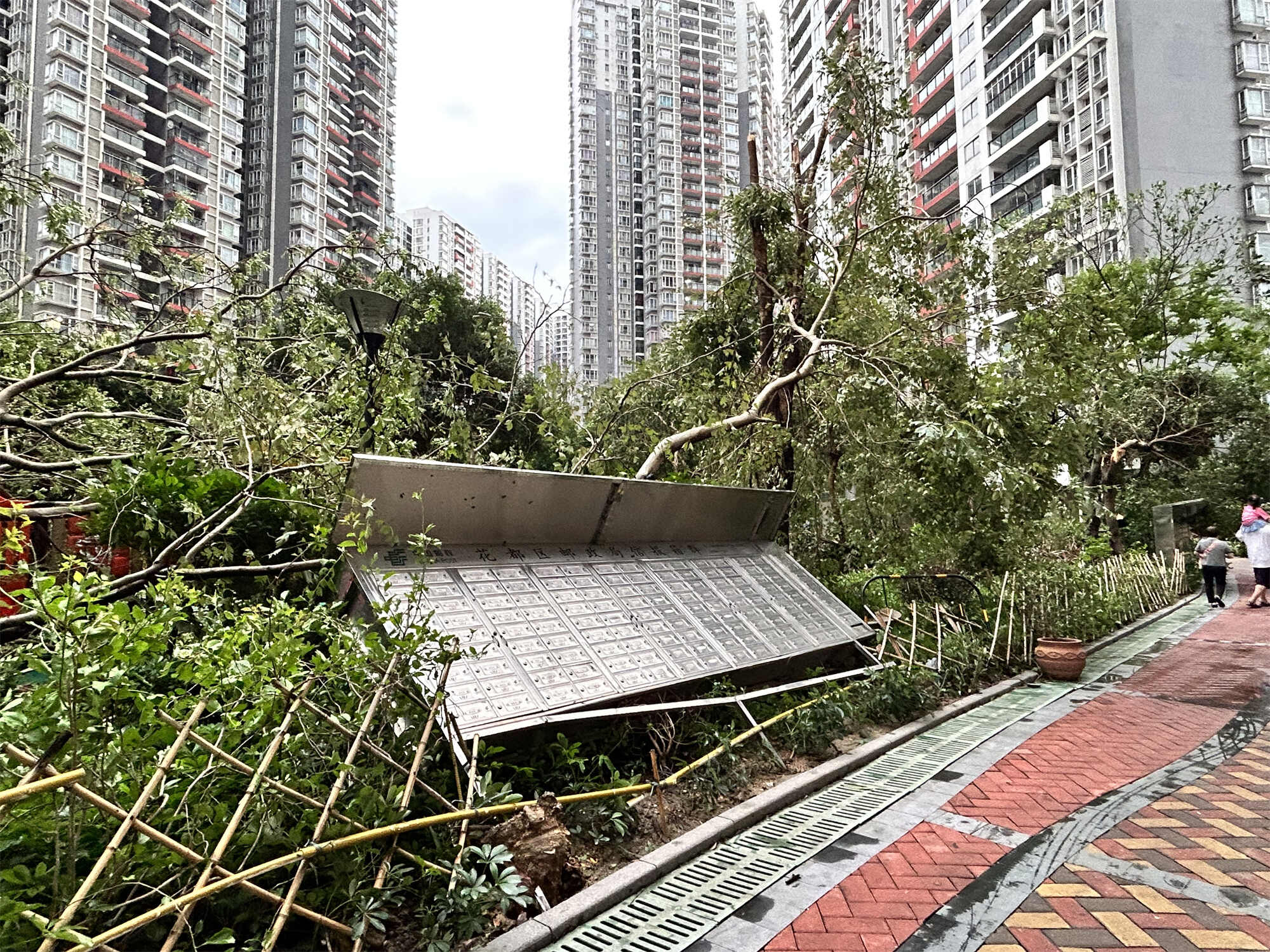 4月27日下午,花都区发布龙卷警报。一场大风雨过后,新华街道一小区附近许多树木倒地,不少树木被连根拔起,垃圾桶、邮箱柜等设施也被大风吹倒。