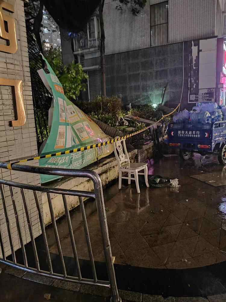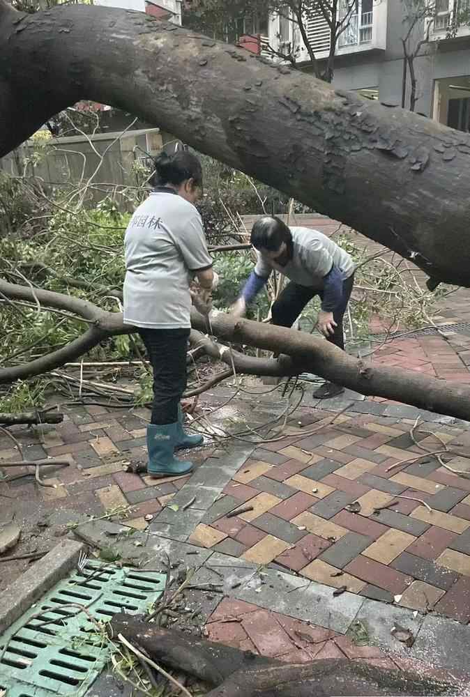 羊城晚报记者从花都区了解到,14时30分左右,受大风影响,天马丽苑小区西门有一段12米的围墙倒塌,小区内25棵大树倒塌,2个垃圾分类点的顶棚各被吹掉一半。15时30分左右停雨后,小区个别居民翻过倒塌的大树抄近路回家。小区物业公司及时安排人员进行处理,直至19时30分,小区内人行通道上倒塌的大树清理完毕。