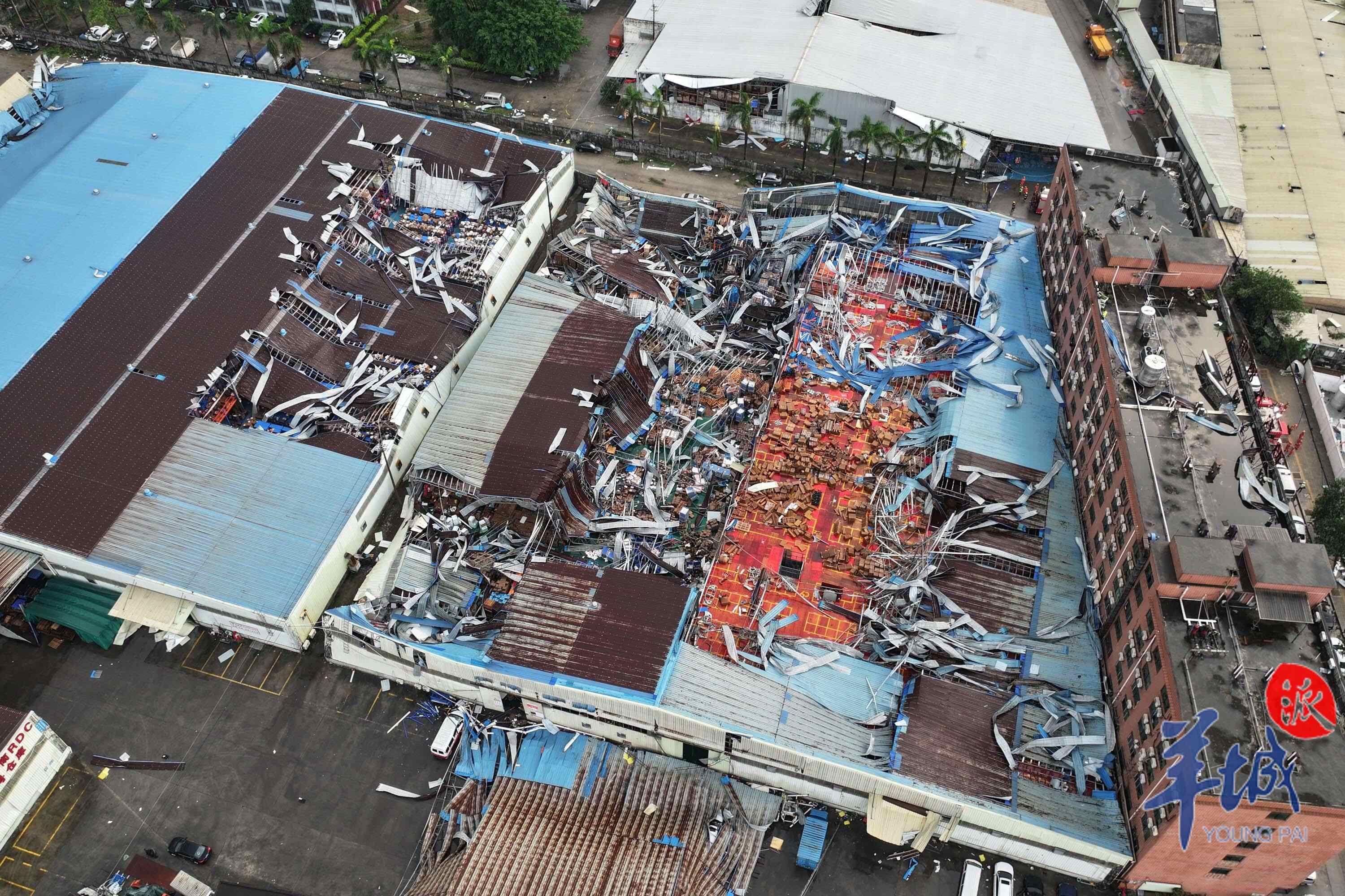 当天下午,羊城晚报记者赶赴现场,发现广州白云区一家具厂厂房被吹翻。