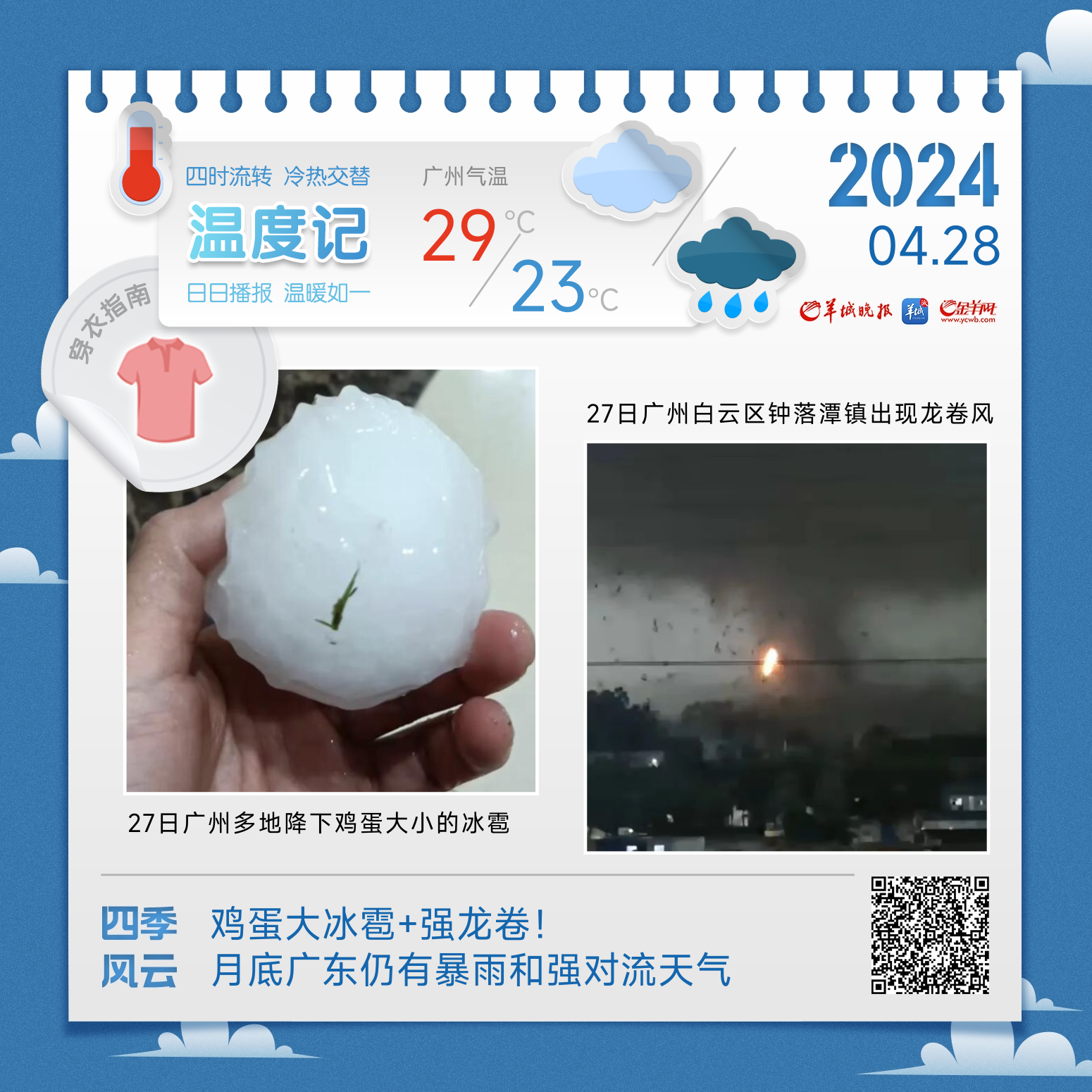 昨天(27日),贵州到江南、华南一带又开启了新一轮强降雨。这轮降雨受暖湿气流主导,强降雨中心较为分散,短时强降雨特征突出。昨天下午,广州局地出现激烈的强对流天气,多地降下鸡蛋大小的冰雹。