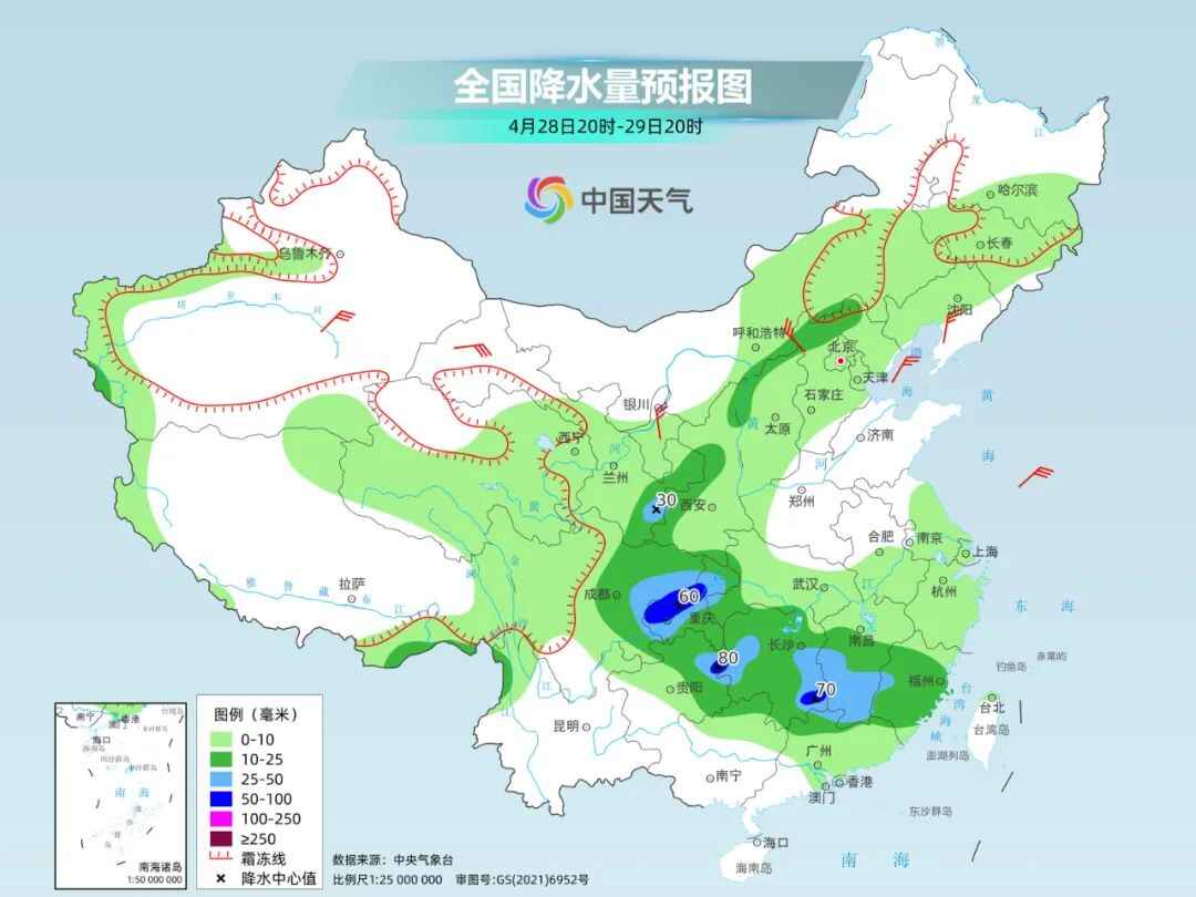 29日至30日,由于新的低槽东移,配合冷空气南下,且低空西南气流增强,形成地面气旋,因此这一轮降雨强度相比现在会更强,强降雨范围也更广、更集中,届时江南东部和南部、华南北部等局地强对流天气会相当激烈,需特别注意。