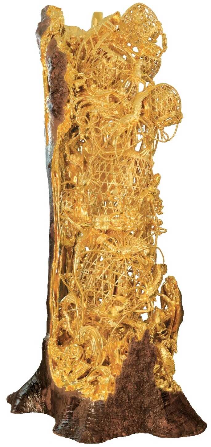 步入大堂,潮州木雕代表性传承人辜柳希《绽放》、金漆木雕《步步高》龙虾蟹篓迎面而来,玲珑剔透,浑然天成,充分体现作者艺术表现力。