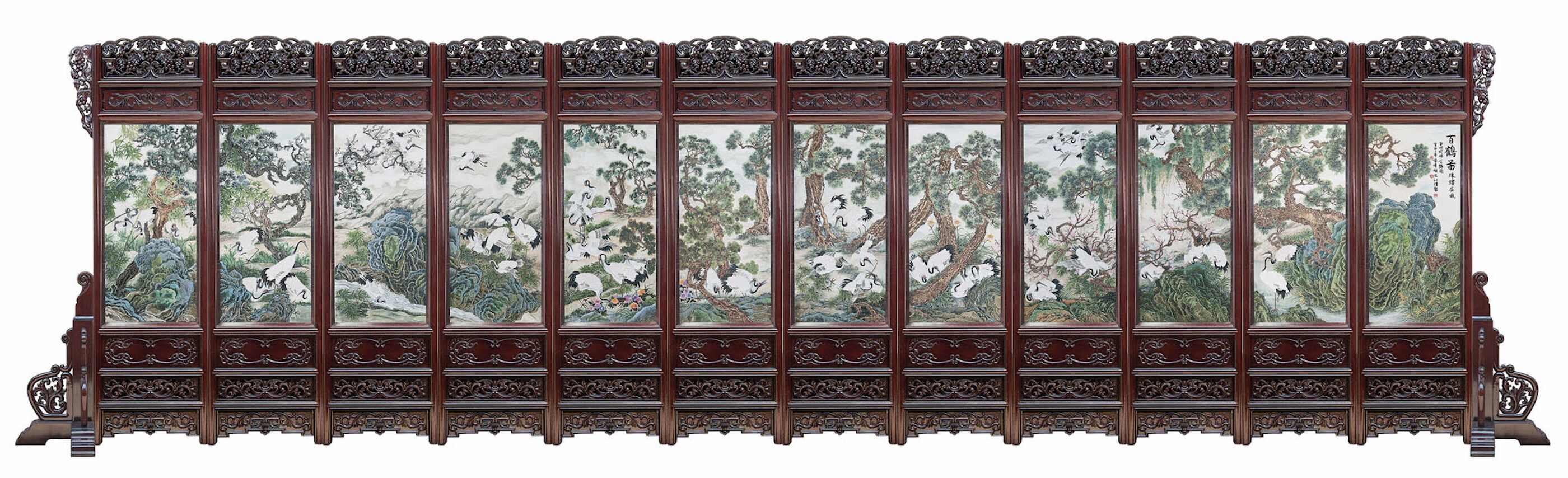 例如,位于“物华锦绣”展厅入口的“百工照壁”,可谓集岭南传统工艺之大成。“百工照壁”以木雕为框架,由灰塑、潮州木雕、广彩瓷烧制技艺等12位非遗代表性传承人,精心打造而成。为了让如此丰富而材质各异的非遗精品汇聚一堂,设计师对“百工照壁”每个板块尺寸都加以精确衡量,并在照壁中央镶上木雕“物华锦绣”四个金漆大字,使照壁富丽堂皇,极具岭南特色。