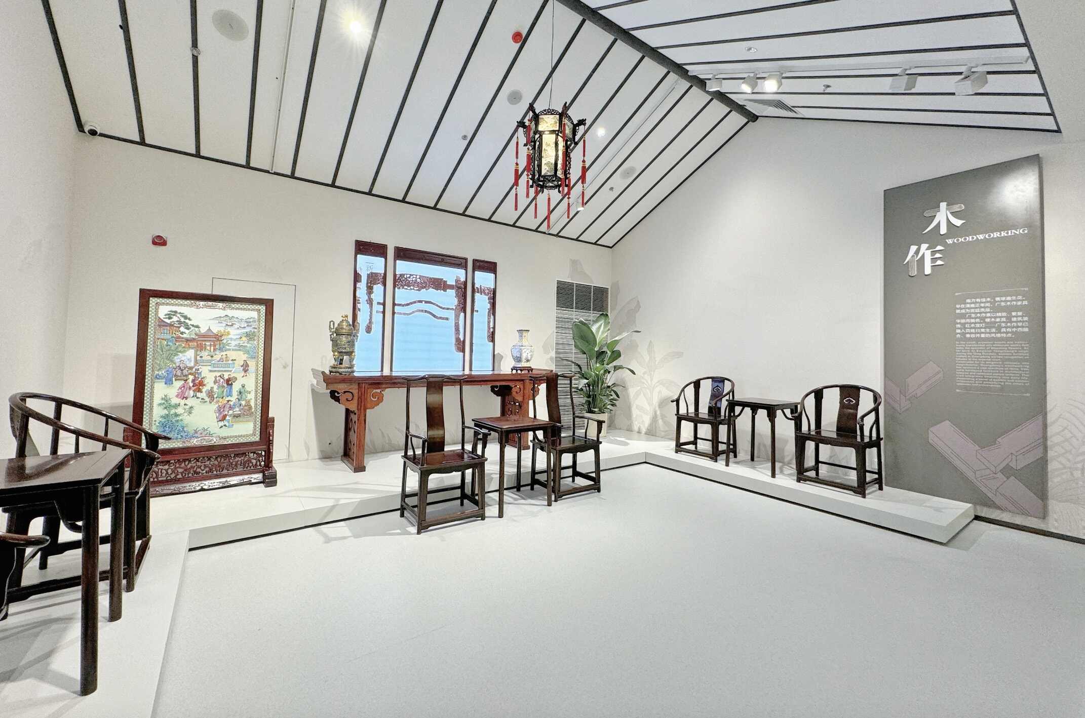 三楼“臻品厅”“物华锦绣”展厅,以传统工艺分类为主线,展示岭南传统工艺的精美绝伦、巧夺天工,彰显广东工匠精神。