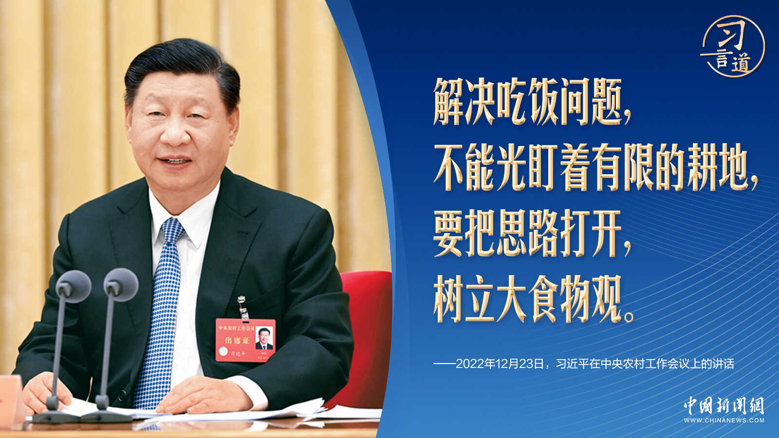 在当年的中央农村工作会议上,他更形象地解释道,“吃饭”不仅仅是消费粮食,肉蛋奶、果菜鱼、菌菇笋等样样都是美食,并以此强调“要构建多元化食物供给体系”。