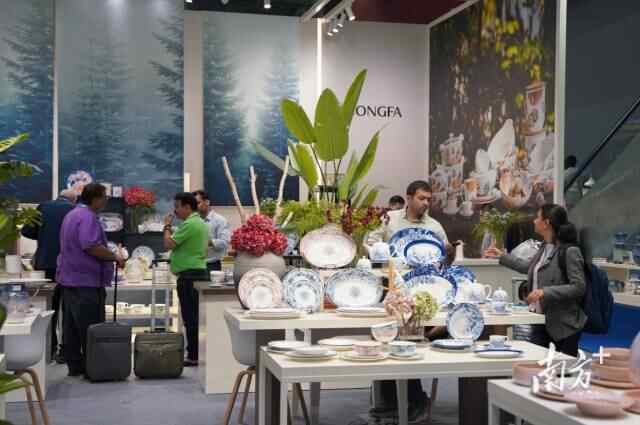 在广东吉玉陶瓷股份有限公司(下称“吉玉陶瓷”)的展位,窑变釉陶瓷吸引了不少采购商的目光。光滑的陶瓷表面,两种颜色交织在一起,相融又不相溶。吉玉陶瓷总经理钟镇昌说,他们今年带来广交会的是新款“手工彩绘+窑变釉”陶瓷,不少国外参展商纷纷留了联系方式,准备到该公司位于梅州的工厂进行考察。