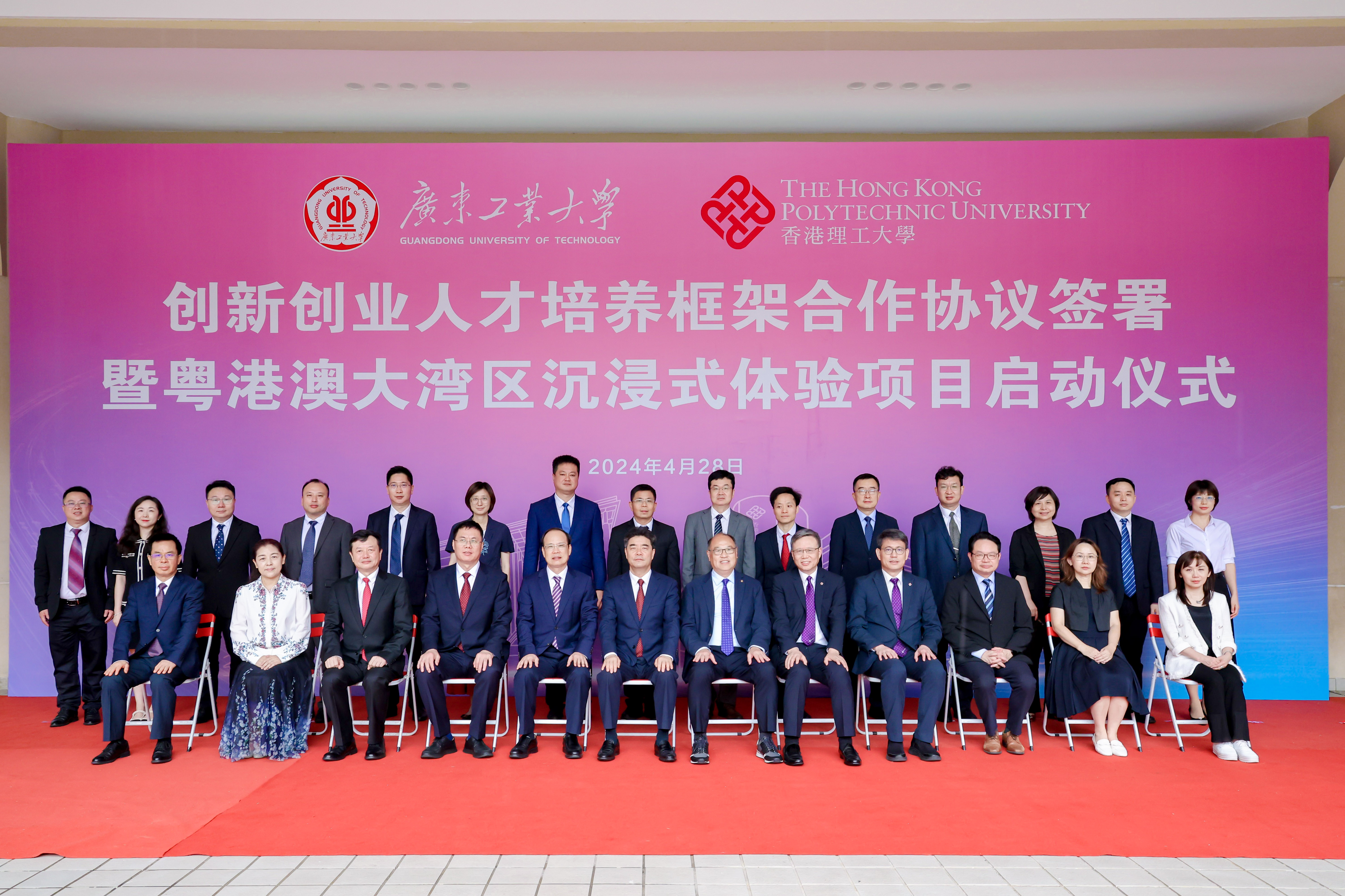 4月28日,广东工业大学(简称“广工”)与香港理工大学(简称“理大”)在广工大学城校区国家级创新创业教育实践基地-工大创谷共同签署了创新创业人才培养框架合作协议,正式启动粤港澳大湾区沉浸式体验项目,两校以“学分制”形式共同打造高质量粤港澳大湾区创新创业人才培养“生态圈”。