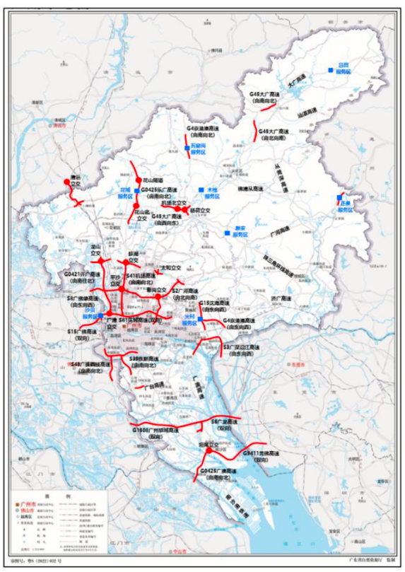 广佛高速沙贝服务区、横沙服务区、京港澳高速瓦窑岗服务区、广河高速正果服务区、大广高速从化服务区和吕田服务、乐广高速花城服务区、北二环高速火村服务区及北三环新安服务区等高速服务区,高峰时段车流密集,可能出现车流倒灌影响主线通行。