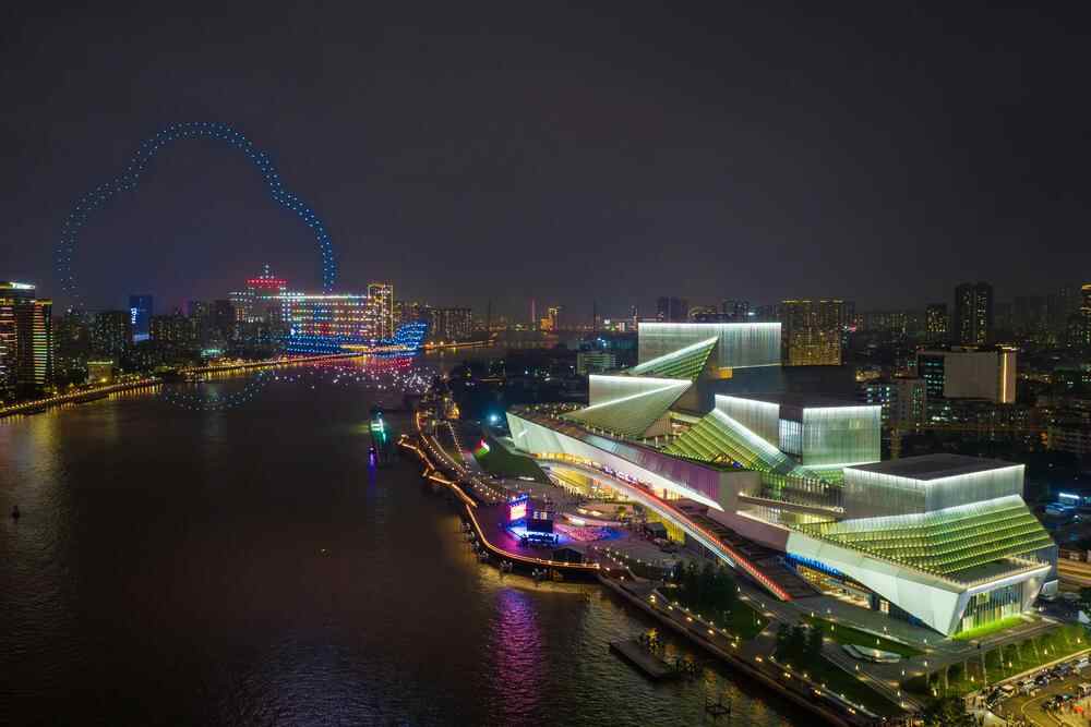 在启用仪式上,播放了《白鹅潭大湾区艺术中心建设巡礼片》,并举行了无人机表演和文艺演出。