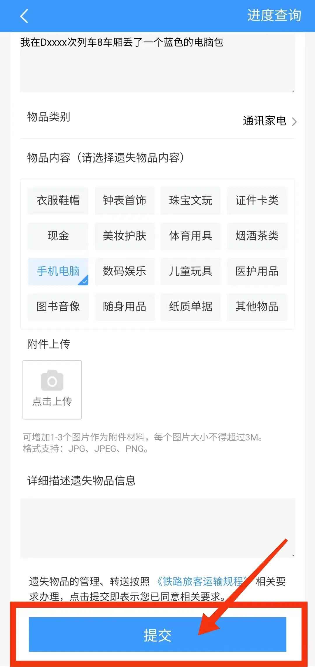 确认无误后点击【提交】,同时也可在本界面右上角查询进度。