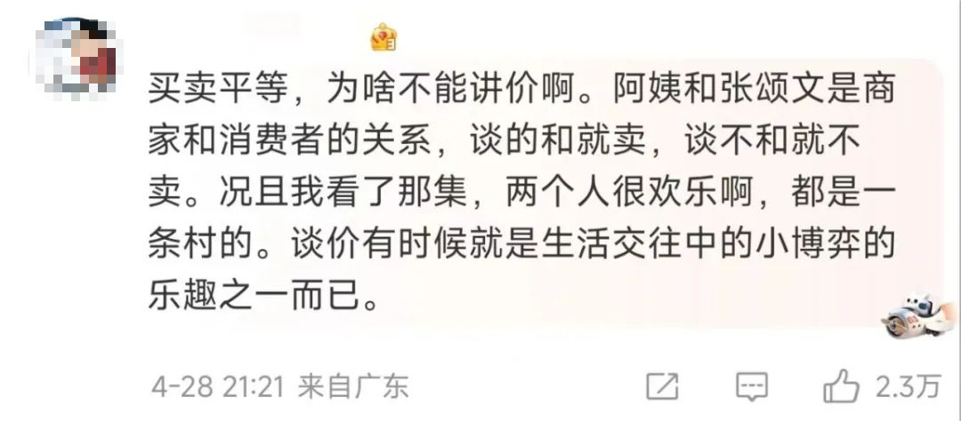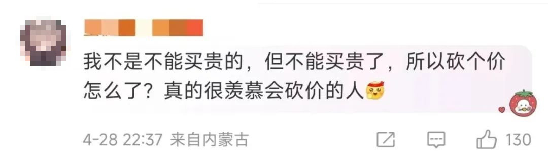 有网友表示,“我不是不能买贵的,但不能买贵了,所以砍个价怎么了?”