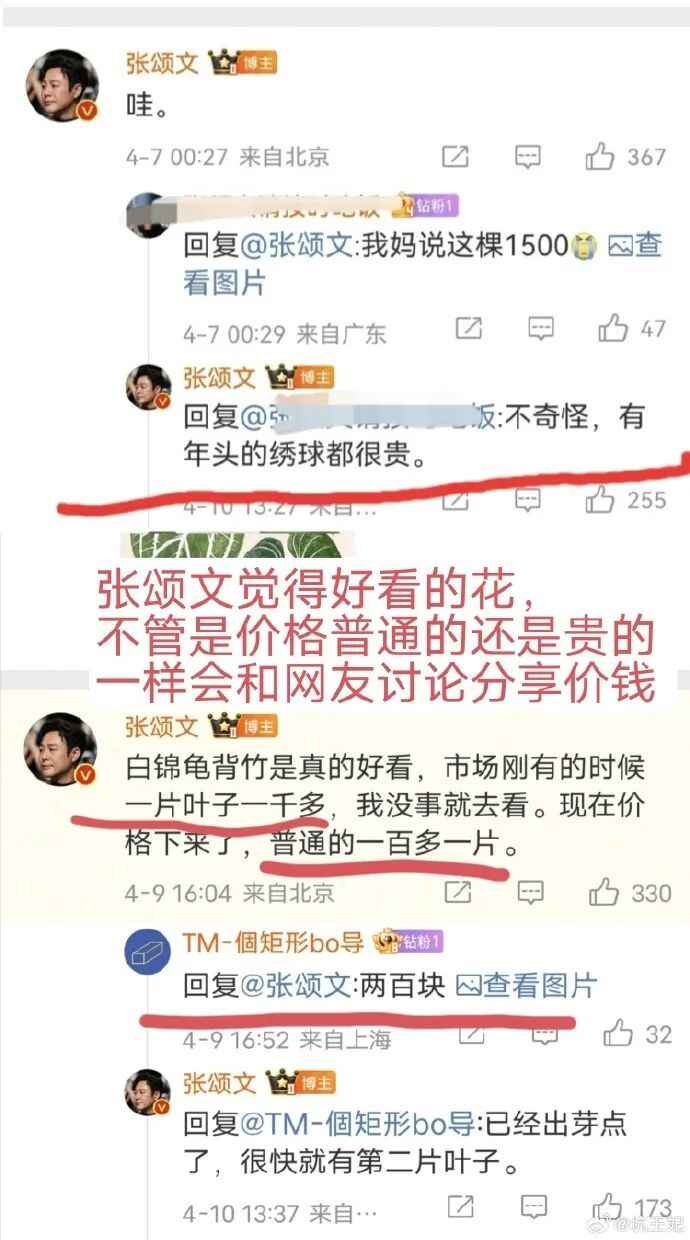有网友认为,张颂文的砍价并非是“立人设”,此前他也在评论区和大家讨论过花草植物的价钱。