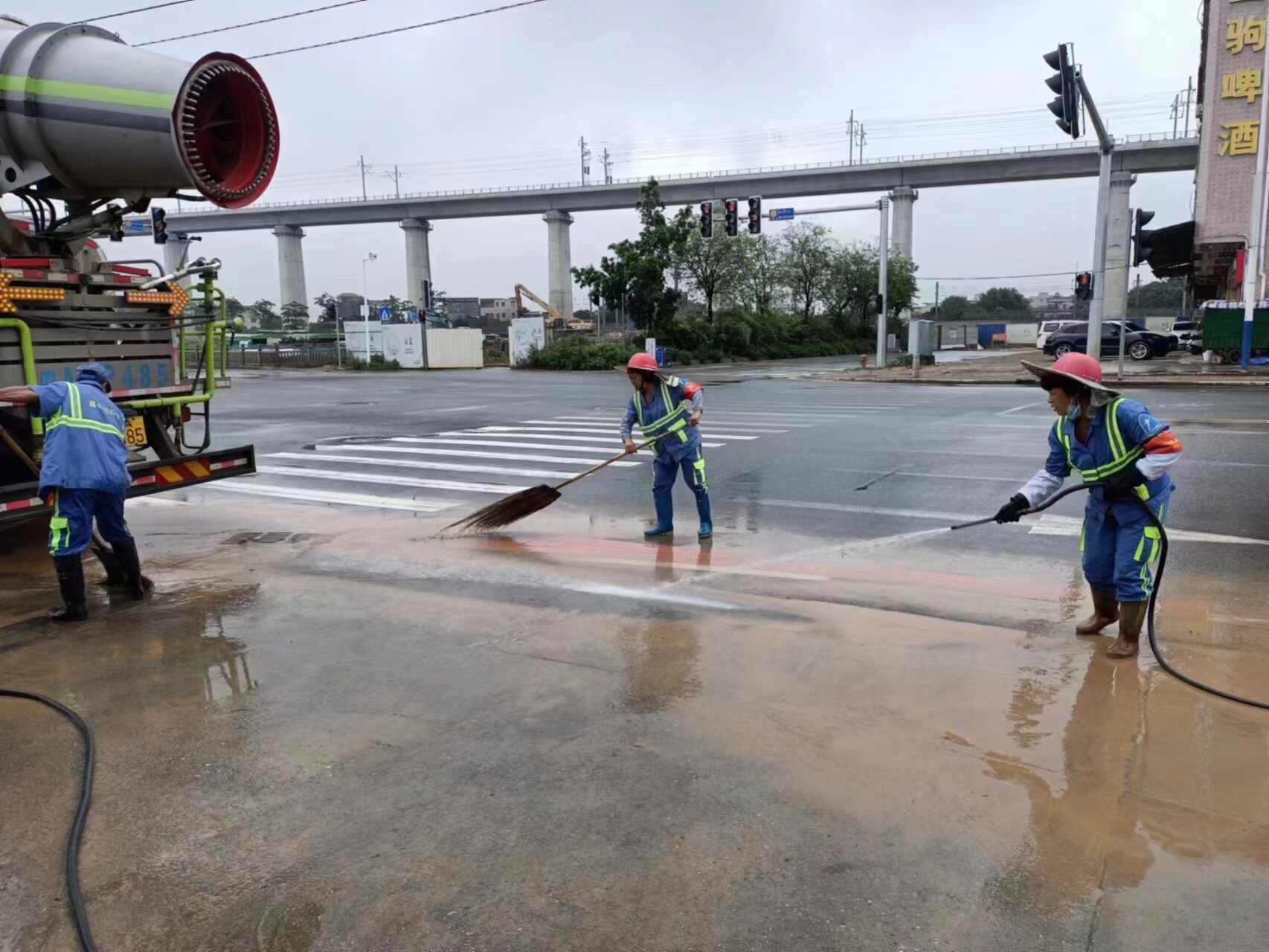 强风暴雨,对城市安全运行构成重大威胁。记者4月29日从广州市增城区城市管理和综合执法局获悉,增城城管部门4月以来全力应对持续强降水天气,努力将持续强降水天气对城市运行的阻碍降到最低。自4月以来,增城区城管部门日均出动环卫工人2230人次,出动环卫车辆298车次,出动环卫车辆分别出动机扫车59台次、高压冲洗车84台次、垃圾收运车155台次,清理雨水口周边垃圾和雨后积水,对易涝点进行重点巡回保洁,保障“脚下安全”。