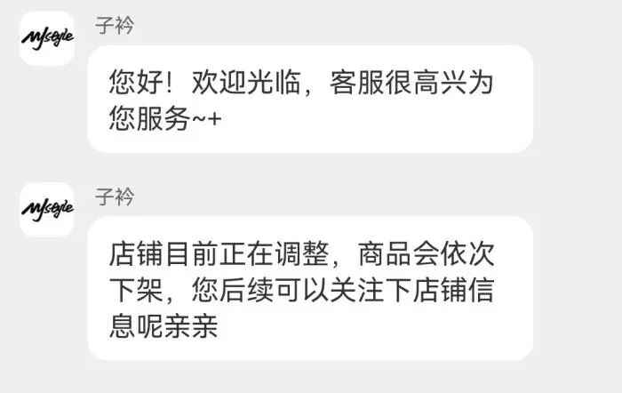 MJstyle线上官方旗舰店客服也向记者表示,“店铺目前正在调整,商品会依次下架,后续可以关注下店铺信息。”