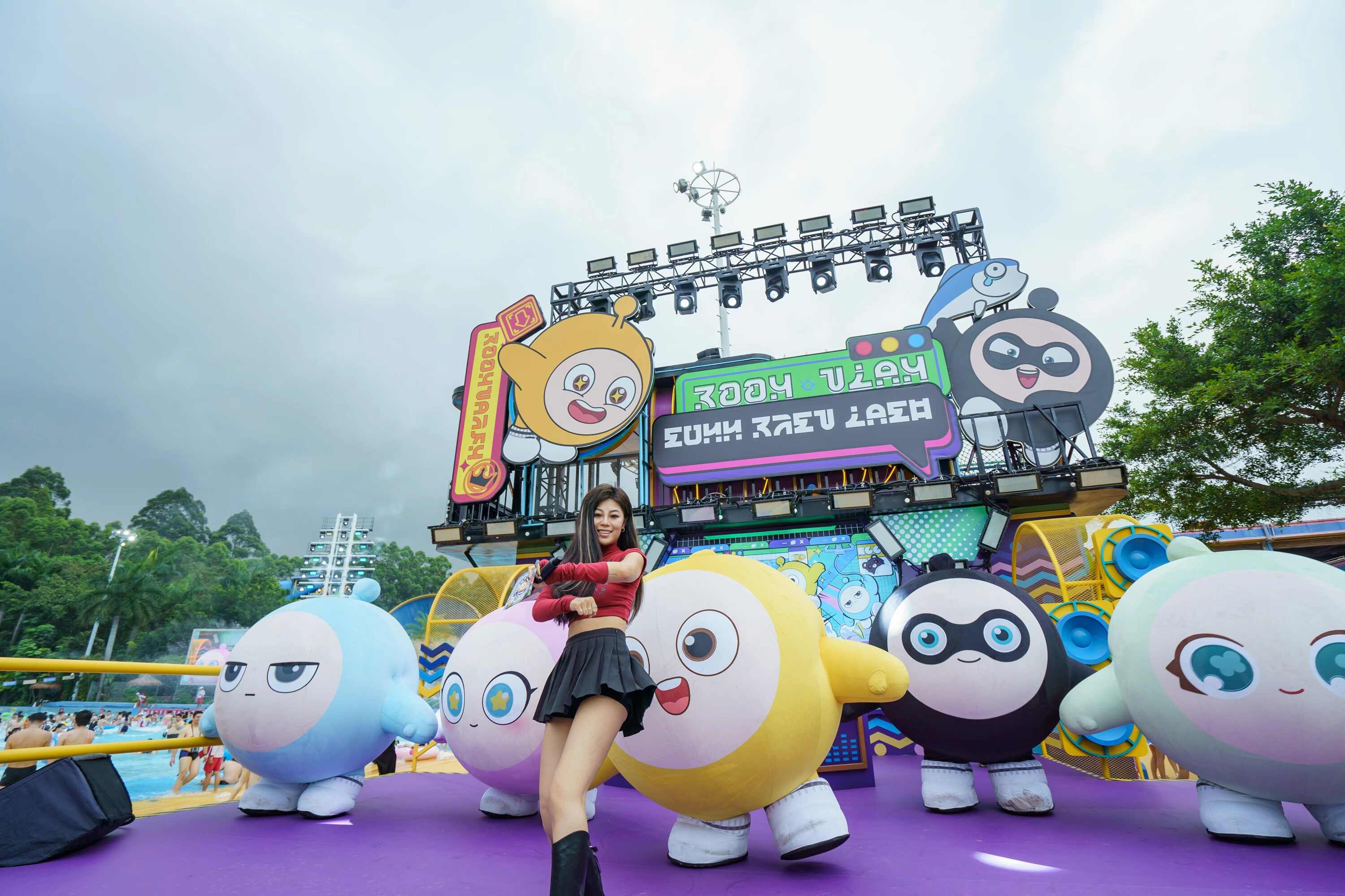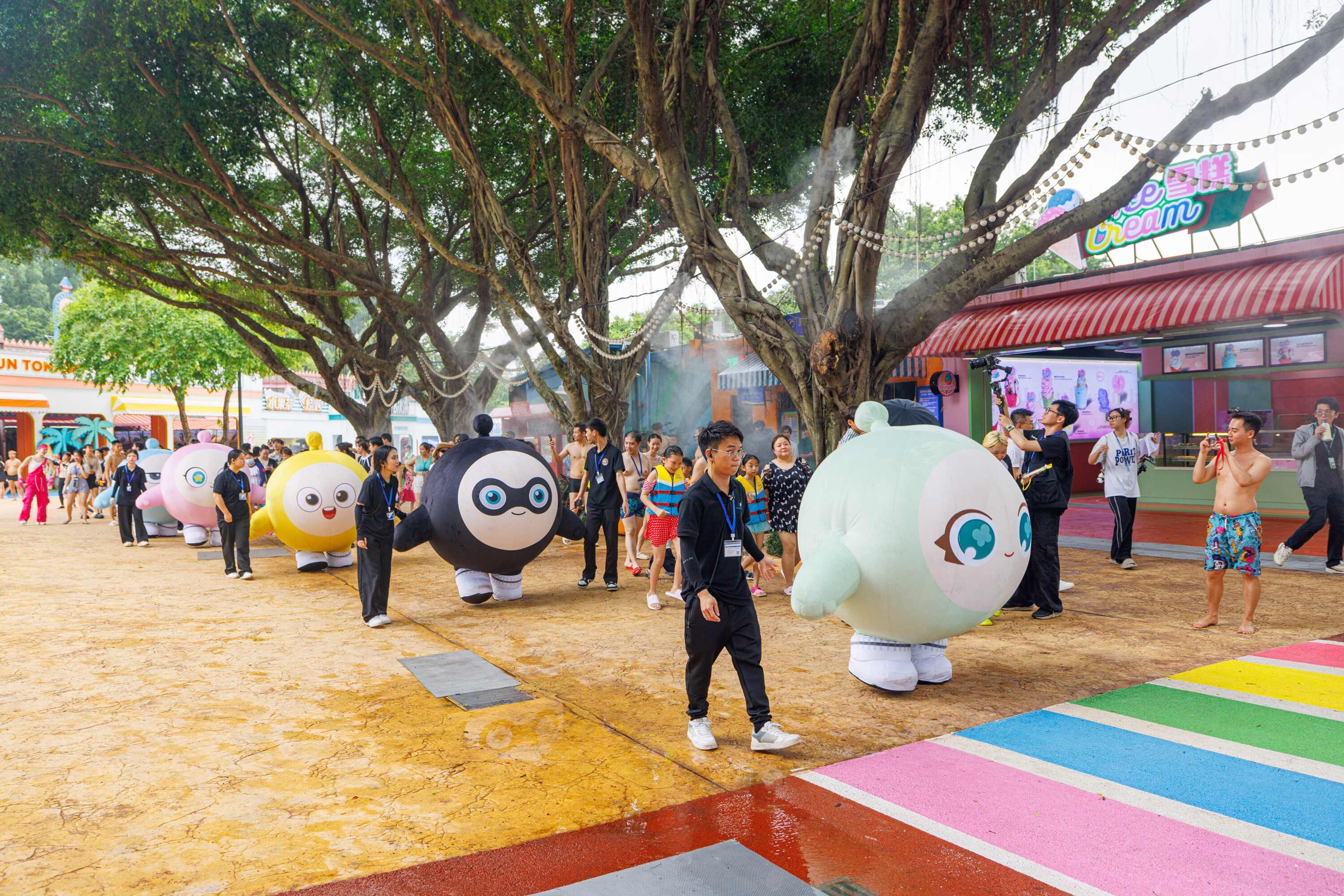 同时,长隆水上乐园的五大经典设备——摇滚巨轮、巨兽碗、大喇叭、疾驰竞赛、合家欢,也与“蛋仔派对”场景紧密结合,精心复刻线上游戏内容,推出全新互动玩法。