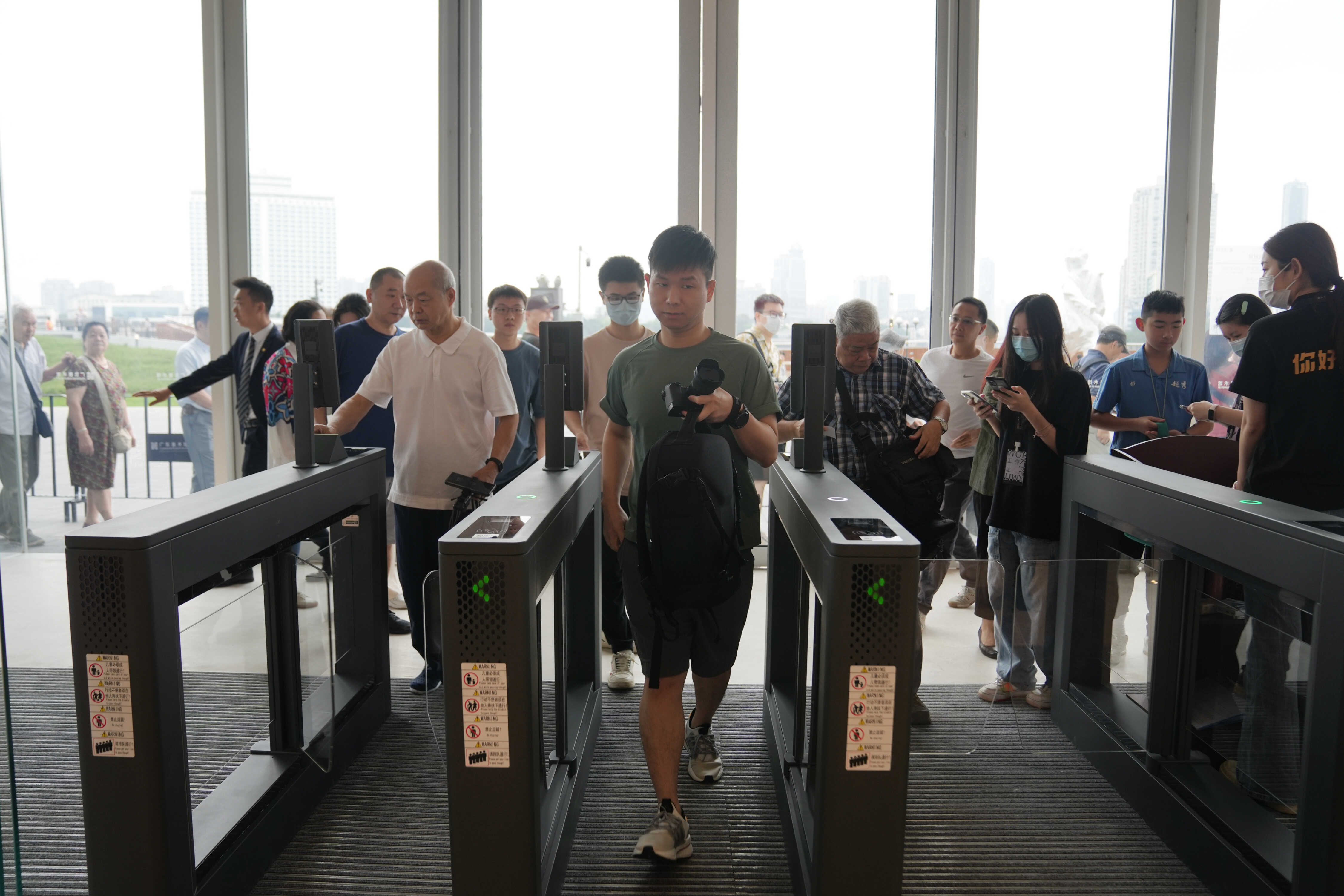 在广州从事商品管理相关工作的黄先生,在门口早早把预约码准备好,迅速过了闸机,成为入馆的第一位观众。“因为听说广东美术馆这次有很多从省外甚至国外运过来的作品,限时段展出,错过以后就看不到了,所以想抓紧时间趁早过来参观。”