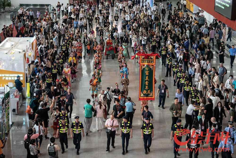2024年5月1日,第135届中国进出口商品交易会(广交会)第三期开幕,英歌舞在展馆内巡演