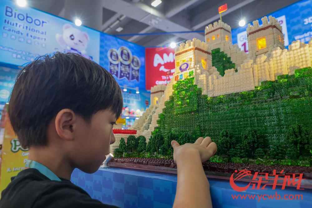 小男孩对软糖搭建起来的城堡产生了浓厚的兴趣
