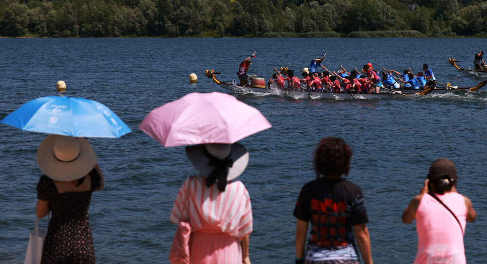 ↑2023年6月25日,首届巴黎国际龙舟嘉年华在距离巴黎市区约70公里的穆瓦松水上娱乐中心开赛,来自中国、法国和意大利的共12支龙舟队参加了200米和500米两个项目的比赛。