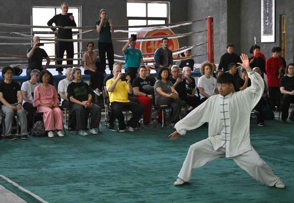 ↑2024年4月20日,河南温县陈家沟太极拳学校的学生在为法国、美国学员进行太极拳表演。