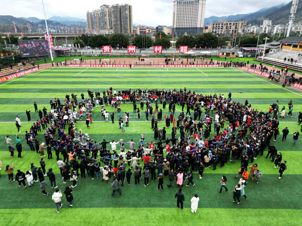 ↑2024年2月26日,中法青年友谊赛后众人一起跳舞(无人机照片)。