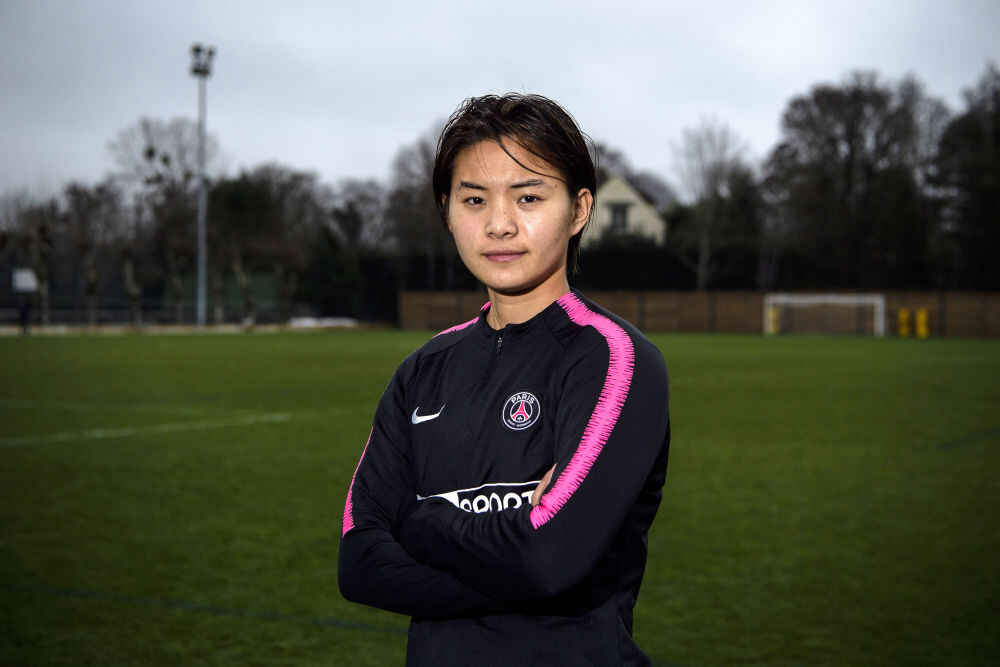 ↑2019年3月27日,巴黎圣日耳曼队球员王霜在在女足欧冠1/4决赛次回合与切尔西队的比赛中带球突破。