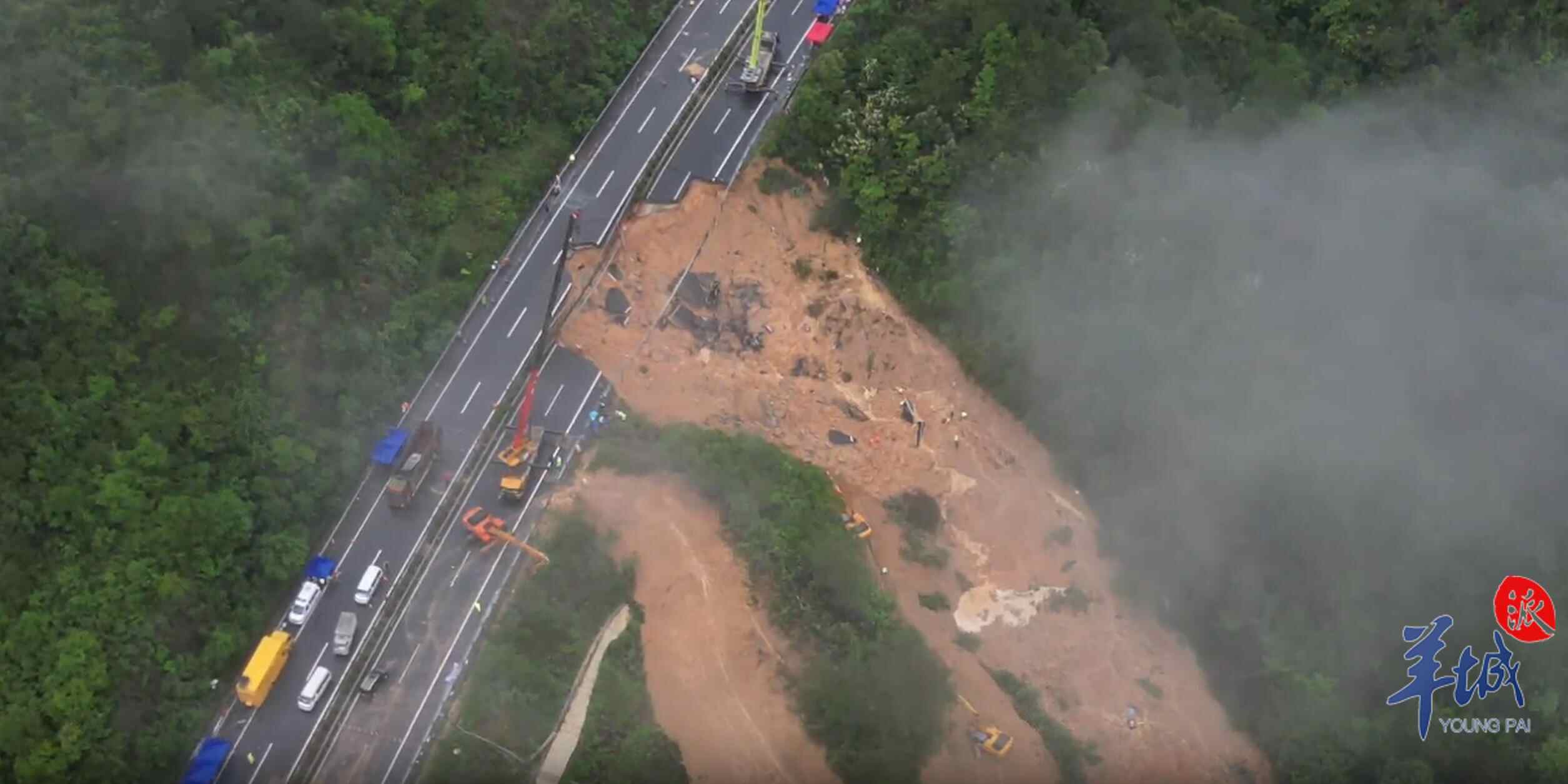 于是,黄建度赶忙翻过护栏,通过对向车道逆行来到塌方路段的另一边,在离塌方位置有一定距离的地方,挥手示意,企图拦停车辆。“当时高速上车辆的车速在100-120码左右,我挥手呐喊,路过的车主减速后以为没事就又往前开了。我眼睁睁看着面前驶过的车子掉下去,真的很难过。”黄建度说。