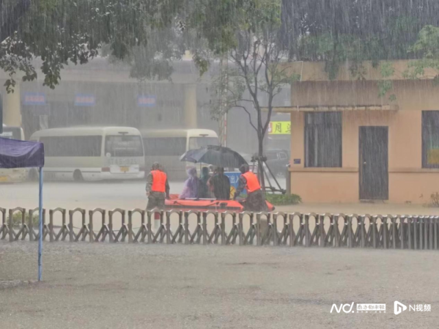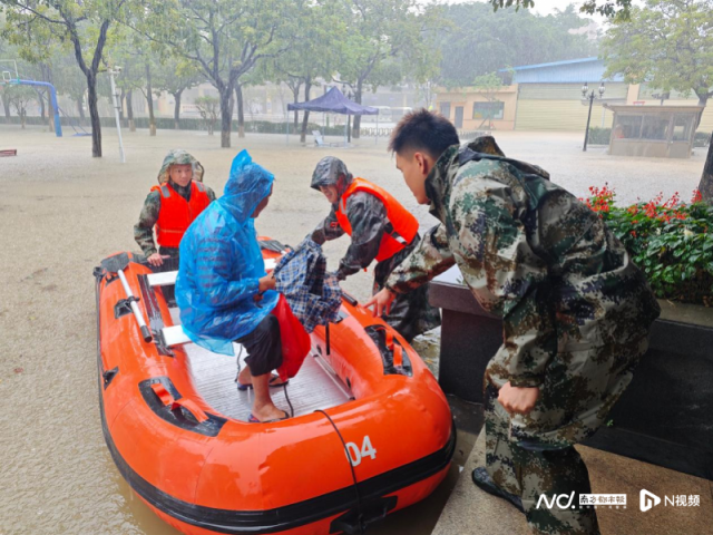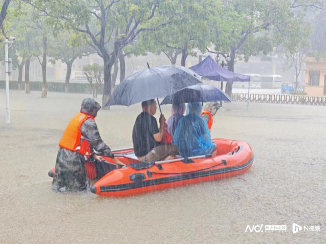 4日上午11时许,三乡镇内多地出现严重内涝和水浸。三乡镇政府周边(景观大道)20余名群众被水围困,民兵应急分队队员立即出动冲锋舟前往救援并将群众转移至安全地带。