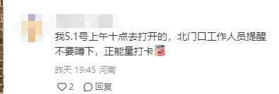 也有不少网友表示,拍照时收到了工作人员提醒,让大家正能量打卡,不要做抱头蹲下的动作。现场广播也在提醒“严禁蹲下抱头拍照”。