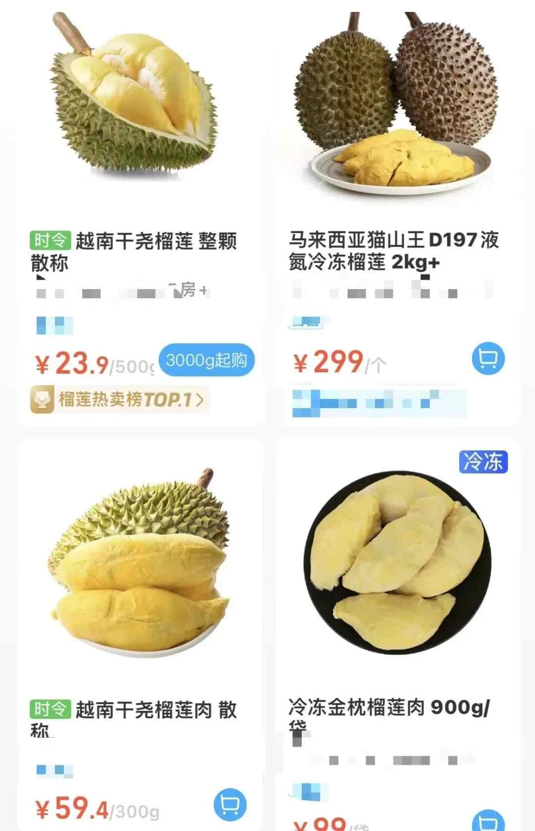 整只售卖的价格也算不上贵,越南干尧榴莲的售价只有23.9元/斤。