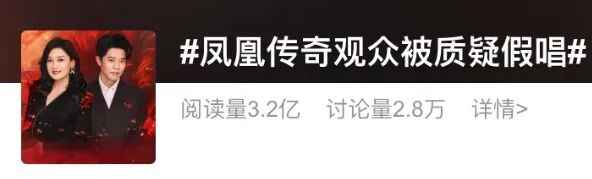 5月6日,多条相关话题冲上热搜。其中#凤凰传奇观众被质疑假唱#,话题阅读量已超3亿。