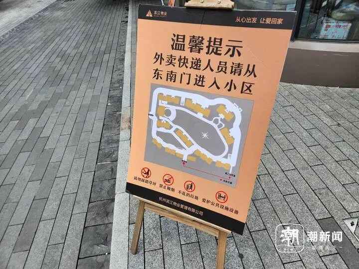 “五一”期间,外卖员姚大哥去杭州玉润钱潮府小区送了两单外卖后向潮新闻·钱江晚报记者帮栏目倒起了苦水,他表示,这个小区有东南、西、南3个人行出入口,但对外卖员只开放了一个东南门,“这就导致我们步行到部分楼幢的时候要横穿整个小区,距离很远,走起来累一点没关系,关键是影响了送单时间。”