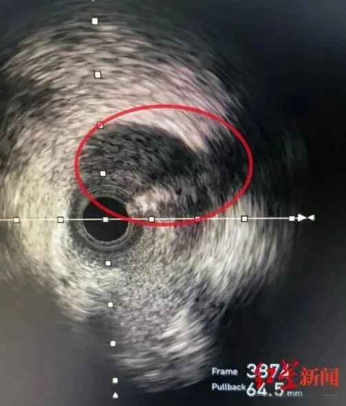 医生经过多项检查,确定了病因——前降支血管夹层影像,俗称自发性冠脉动脉夹层(SCAD)。简单来说,就是血管内壁有撕裂,漏出的血液被尚还完好的血管外壁兜着,犹如自行车胎“鼓包”。