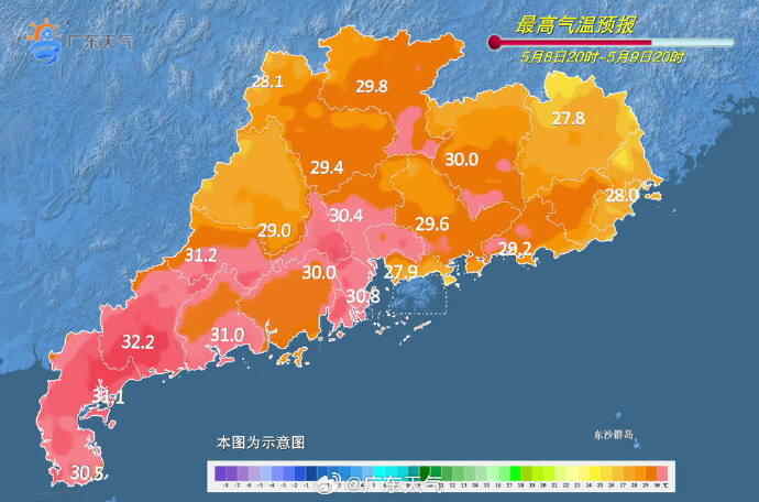 ◆预计未来两天,广东大部多云间晴为主,有分散的阵性雷雨,局地雨势大,并伴有短时强降水、8级左右短时大风等强对流天气。