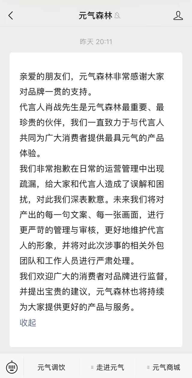 元气森林5月8日晚在官方微信道歉,称关于错用图片引发的误会,将严肃处理此次涉事的相关外包团队和工作人员。