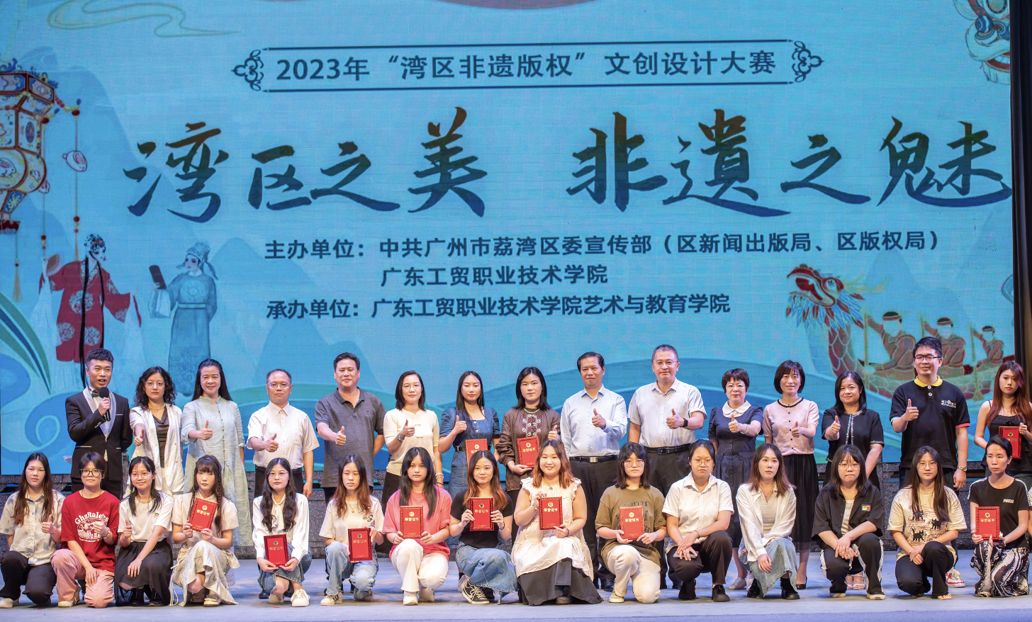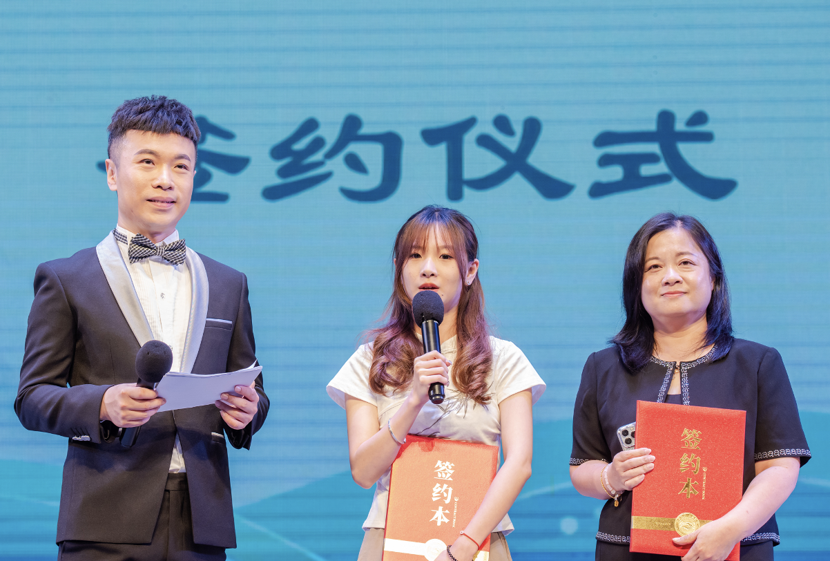 颁奖仪式现场,广州市版权保护中心、荔湾区委宣传部、荔湾区教育局、荔湾区文广旅体局、广东工贸职业技术学院相关领导嘉宾及特邀非遗大师为获奖代表颁奖。相关企业与获奖者现场签署了产品转化合作协议,不仅将优秀文创版权设计投入生产,更鼓励建设“非遗资源+文化创意”产业链。