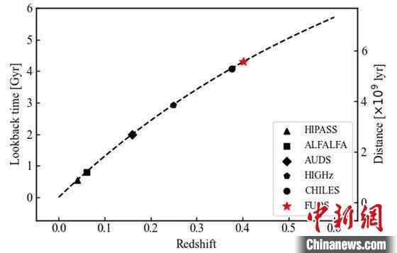 彭勃指出,在本项研究中,FAST超深场巡天发现6个距离约为50亿光年的中性氢星系,这是迄今用21厘米发射线直接探测到的最远的中性氢星系样本,其中一个星系具有迄今所知最大的中性氢质量。FAST超深场巡天项目团队通过估算样本中大质量中性氢星系的密度,发现42亿年前的宇宙中,拥有更多大质量中性氢星系。