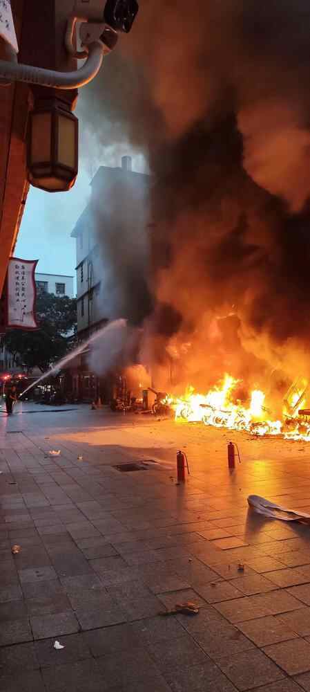 5月10日,一段火灾视频在广州街坊群中疯转,引发广泛关注。视频中,广州市白云区三元里街抗英大街的一沿街商铺冒出浓烟,大火蔓延至周边多间房屋,街道路面停放的多辆电动车也被吞噬。随后,消防车和消防人员迅速赶至现场,将大火扑灭。