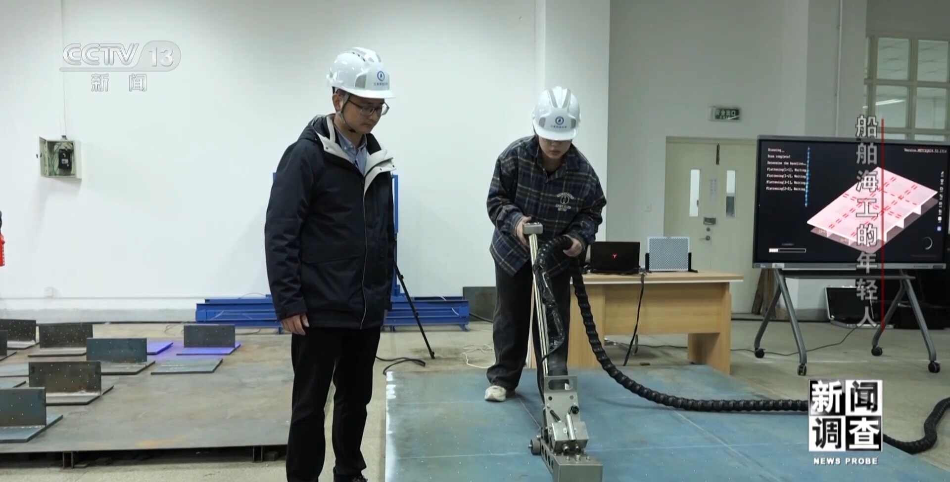 上海外高桥造船有限公司精度技术部副部长 孙建志:我们做了大量的实验,根据不同的变形用不同的办法,看它的矫平的效果,