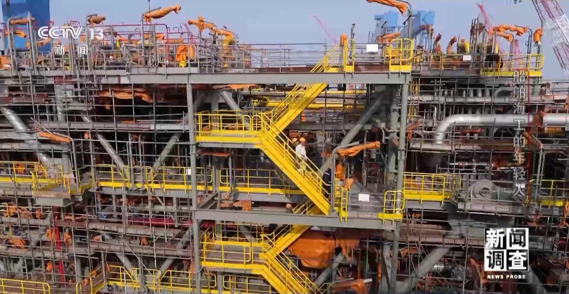 孙博文是启东中远海运海洋工程有限公司科技创新室的负责人,他带记者登上了一个正在地面建设还未吊装到平台上的模块。