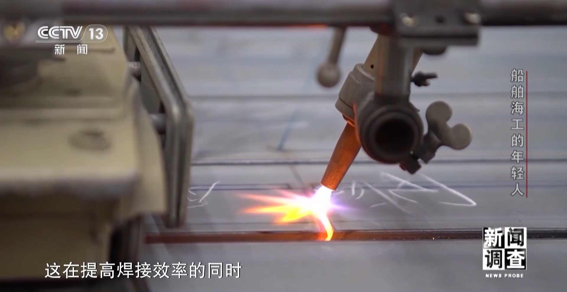 上海外高桥造船有限公司精度技术部高级工程师 邓琳:一方面焊接效率高了,把热量用在刀刃上了。第二它不会影响非焊缝区域的热循环,激光能把温度集中在非常细的、窄的一条线上,就不会影响边上的变形。