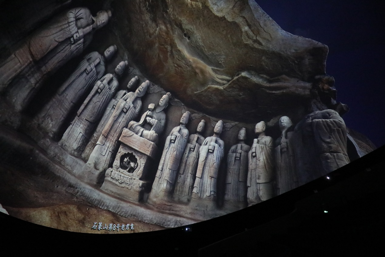 4K宽银幕电影《天下大足》以电影叙事方式,突出大足石刻的开创和历史演进过程。8K球幕电影《大足石刻》采用实景拍摄和CG动画结合的方式,向观众展示大足石刻的艺术价值。两部电影犹如一部作品的上、下两篇,全天放映,成为大足石刻游览的重要组成部分。