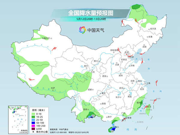 今天夜间到明天,降雨会继续向南压缩至华南南部等地,福建东南部、广东西南部沿海、海南岛等地部分地区有中到大雨,其中,云南东南部、海南岛中东部等地部分地区有暴雨。