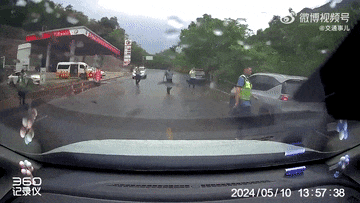 网传视频是一段行车记录仪录像,拍摄时间为2024年5月10日13时57分。