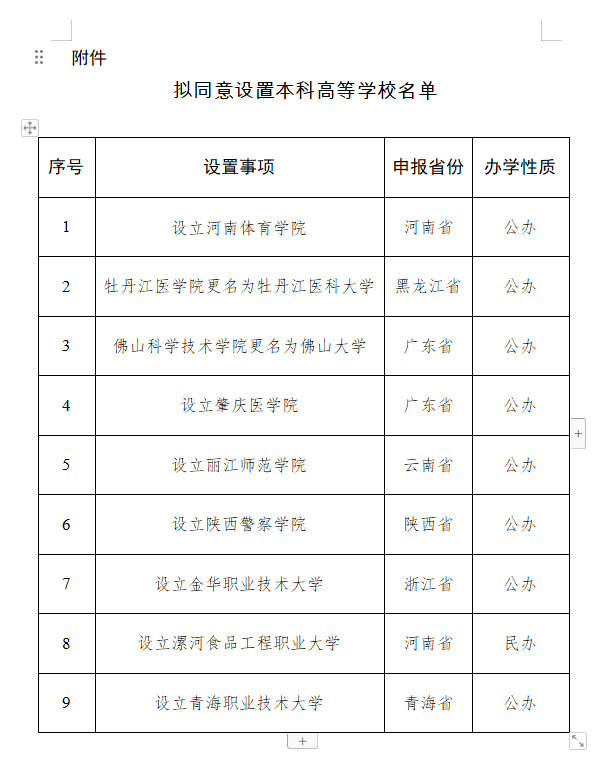 5月13日,教育部发布了拟同意设置9所高校的公示。其中,佛山科学技术学院更名为佛山大学,同时广东还拟设立肇庆医学院。