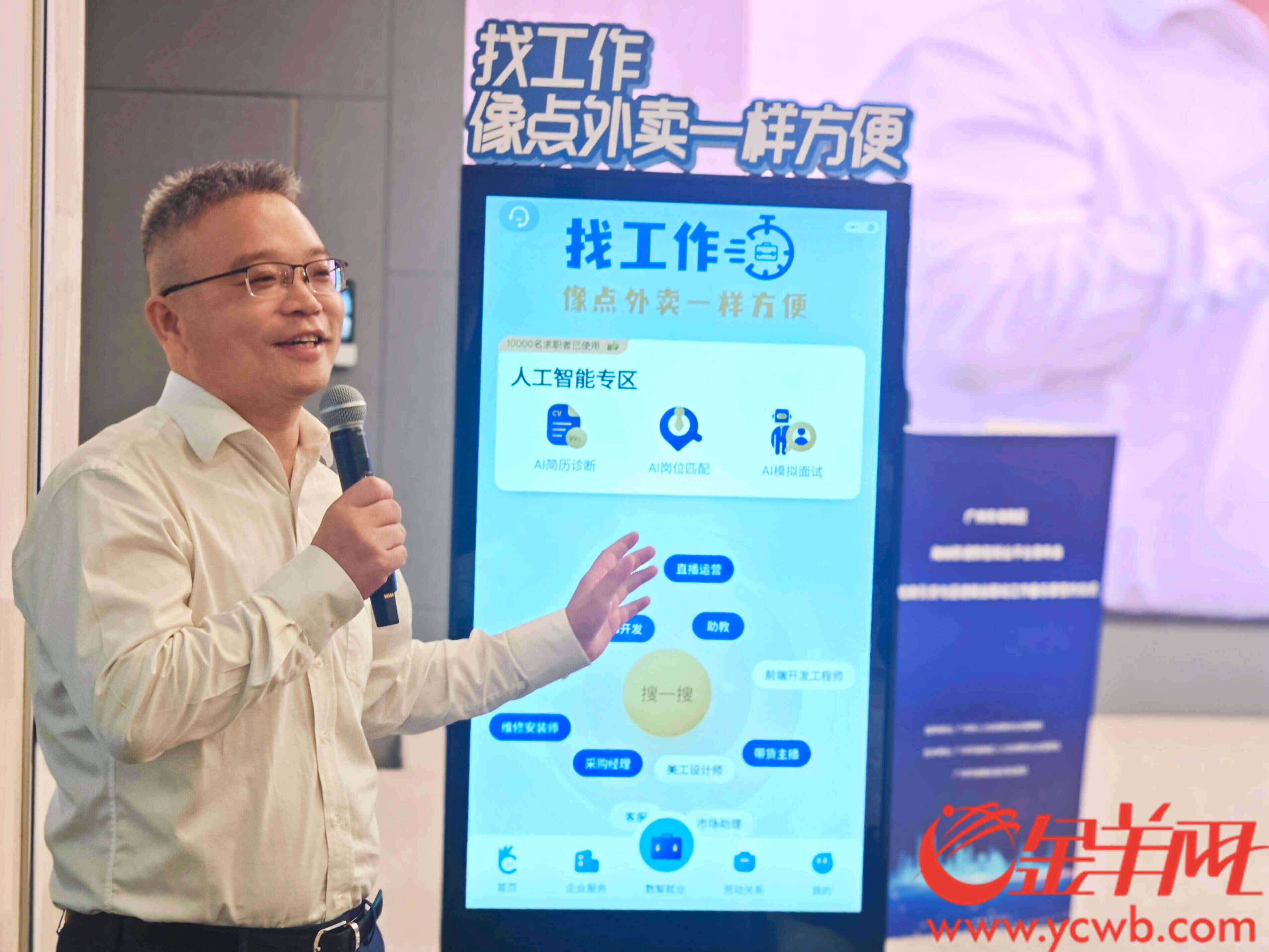 海纳职通数智就业平台运营方、广州叮咚科技集团有限公司创始人兼CEO齐超宇对平台功能进行详细介绍